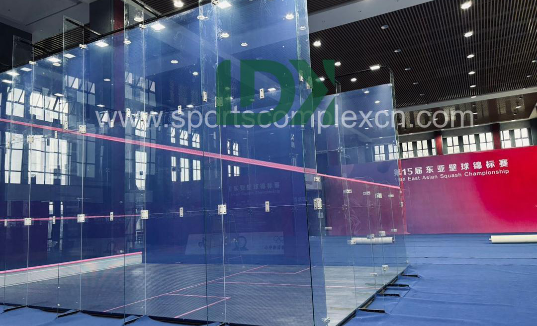 This indoor tournament venue in Qatar required a truly top-tier, bespoke all-glass squash court. We customized every detail to meet the most rigorous competition performance standards while providing a high-end, tournament-ready aesthetic.
