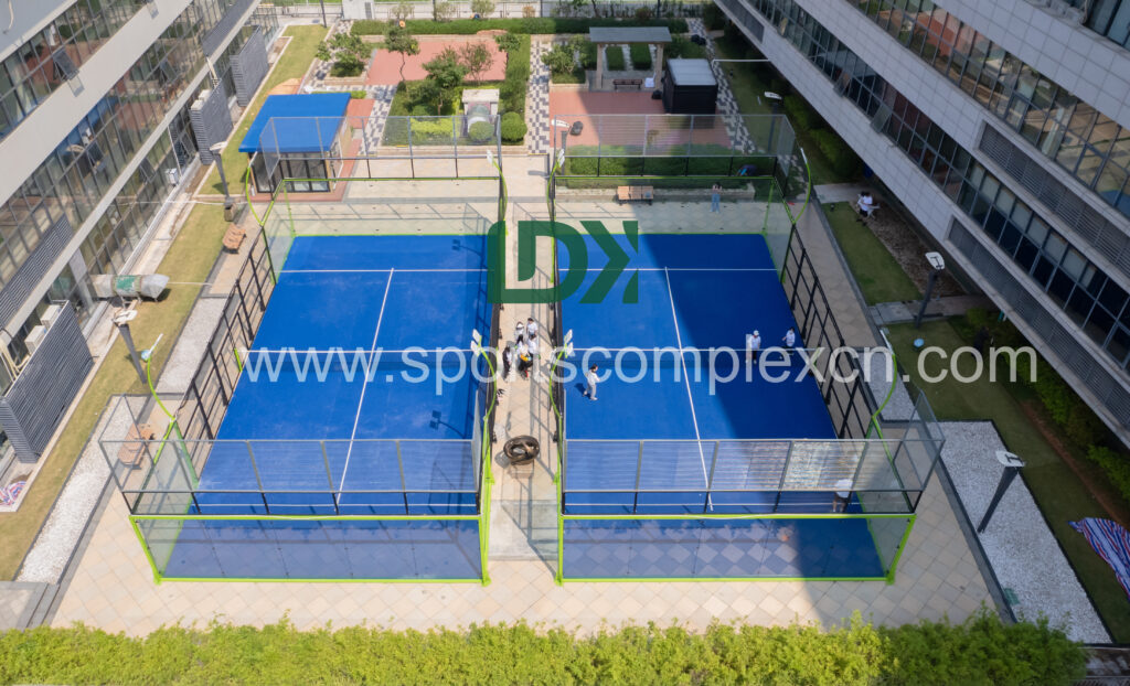 Designed as a vibrant outdoor sports community hub in Dongguan, this personalized padel court features a minimalist black steel structure and premium high-end artificial turf customized to create a cohesive recreational outlet for diverse local residents.