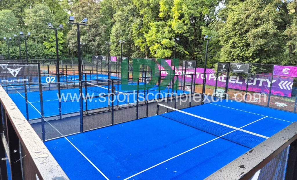 For this Venezuela location, we engineered a customized outdoor panoramic padel court with a durable spigot structure. This specific engineering ensures maximum structural integrity and safety while providing a bespoke, sleek modern aesthetic that perfectly complements the club’s premium branding.