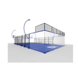 Our panoramic padel court is designed for professional clubs, offering unobstructed visibility and superior aesthetics. Featuring a frameless design with 12mm tempered glass, this court meets World Padel Tour standards, ensuring top-tier performance and style.